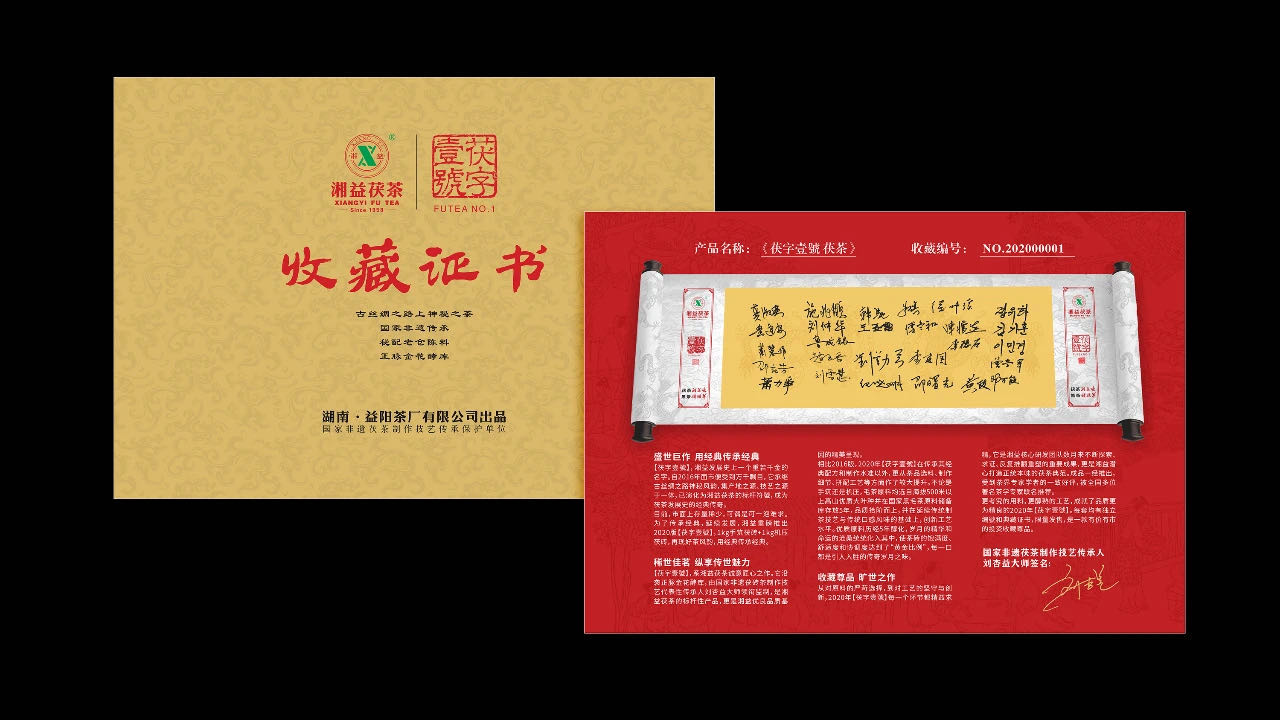 2020年【茯字壹號】傳承老配方標準精心調配,沿襲正脈金花酵庫,由國家非遺茯磚茶制作技藝代表性傳承人劉杏益大師領(lǐng)銜監制。它是湘益茯茶的標志性產(chǎn)品,更是湘益優(yōu)良品質(zhì)基因的精美呈現。